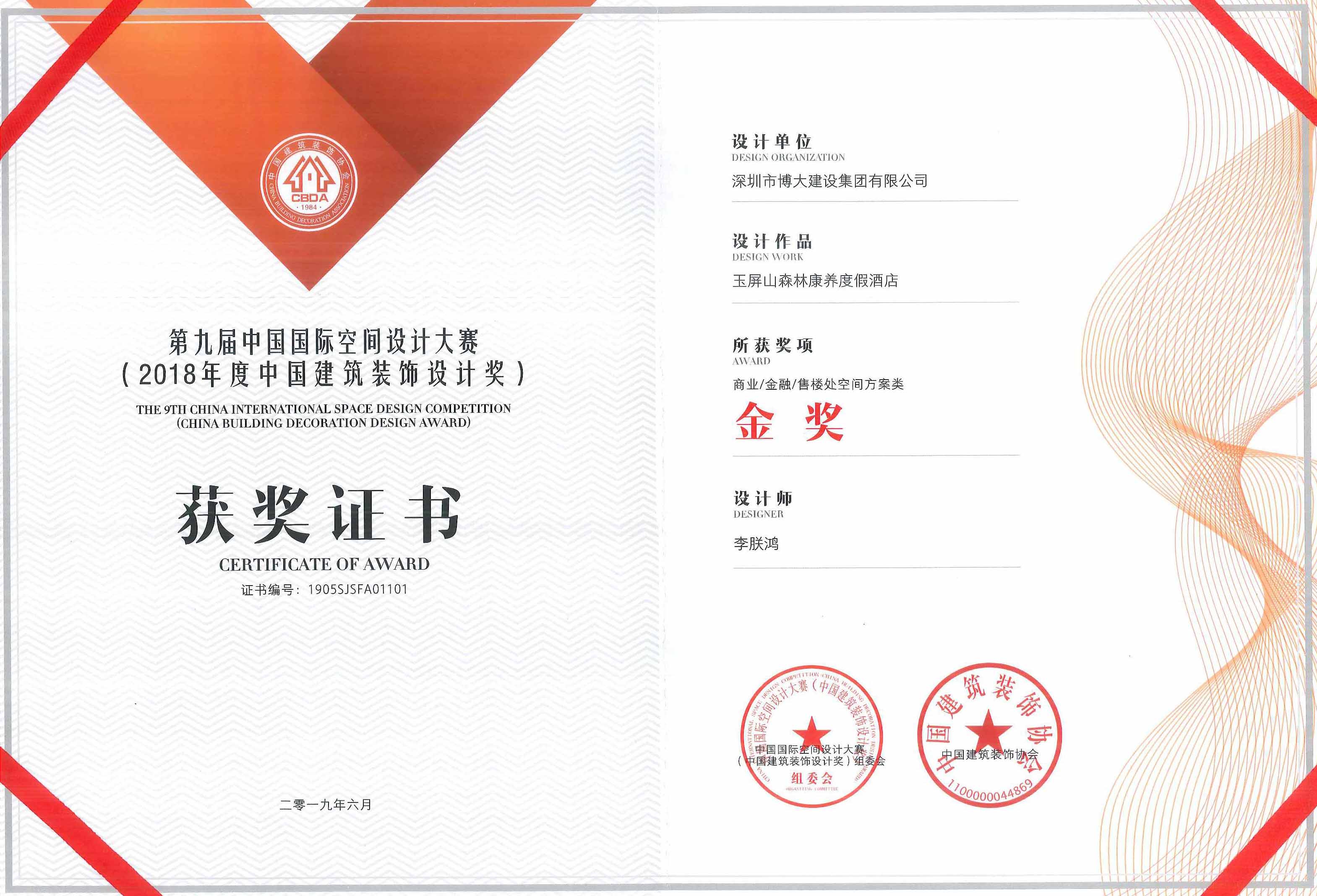 2018年度中國建筑裝飾設計金獎