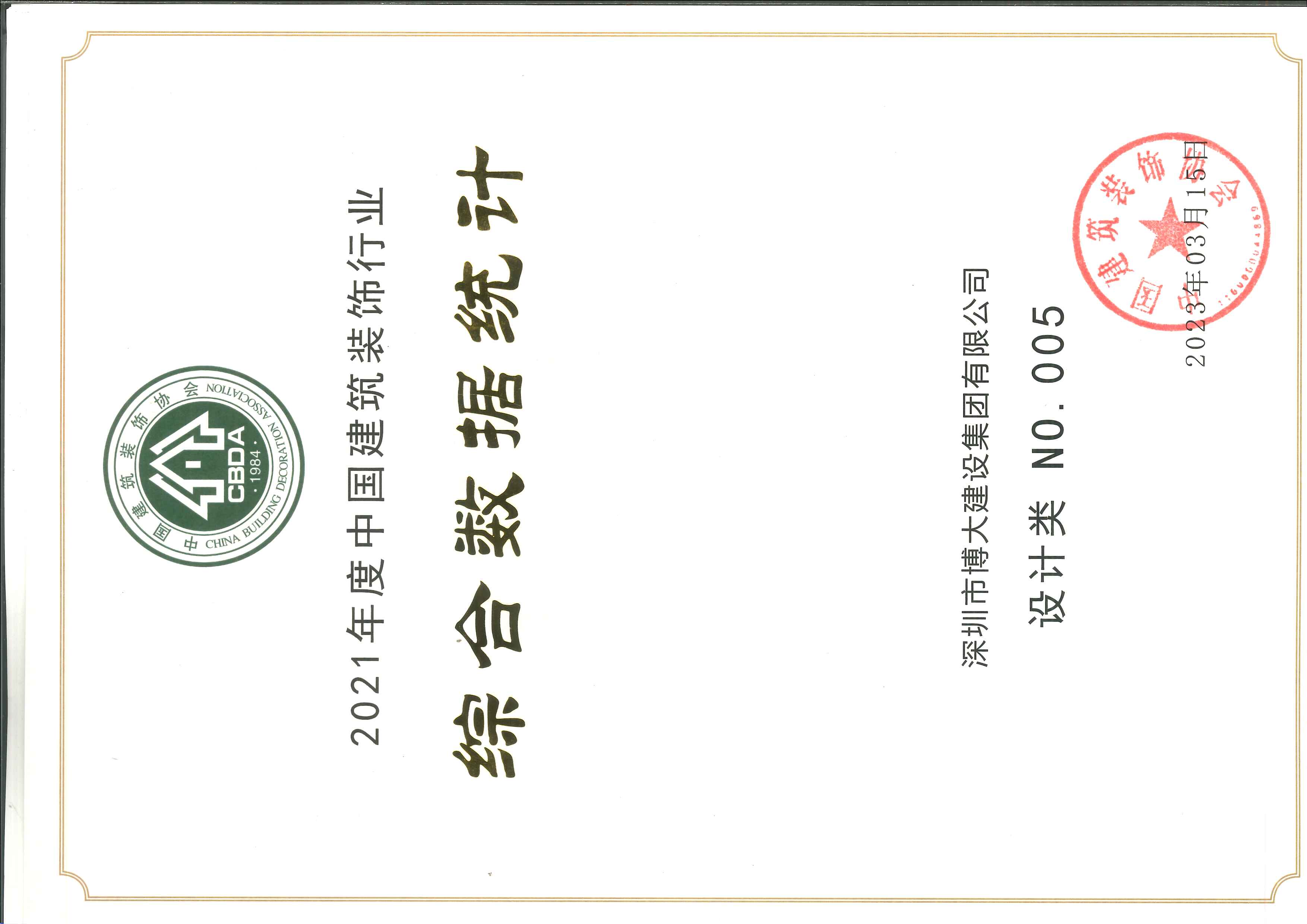 2021年度中國建筑裝飾行業百強設計類第五名